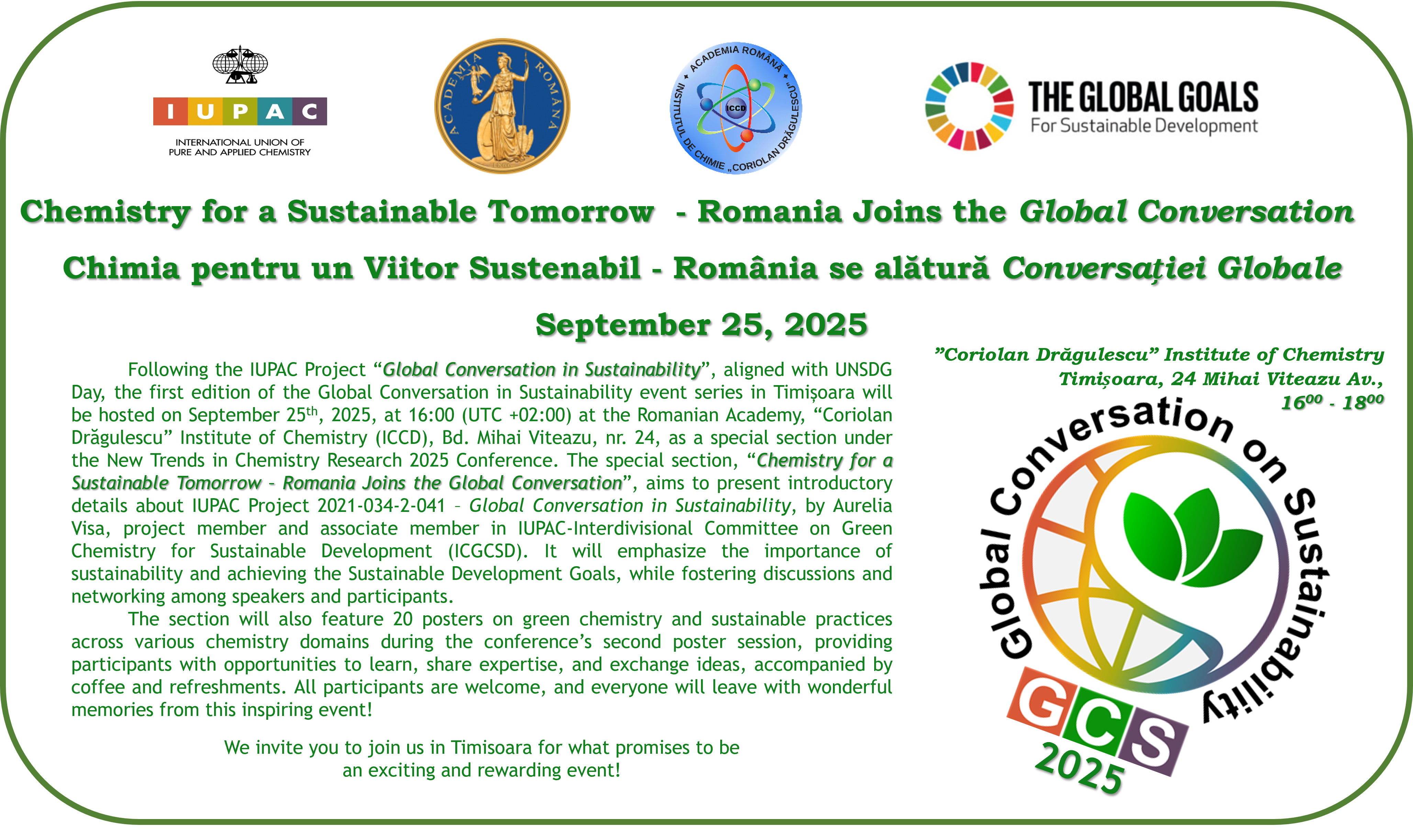 Timisoara's "Coriolan Drăgulescu" Institute of Chemistry will host the 17th edition of the conference with foreign participation, "New Trends in Chemistry Research," on September 24-26, 2025. (Romania).